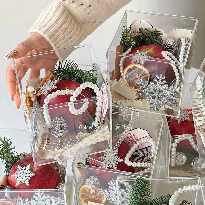 Christmas apple box packaging box, Acrylic transparent Christmas apple gift box, high-end Christmas Eve gift box, empty box