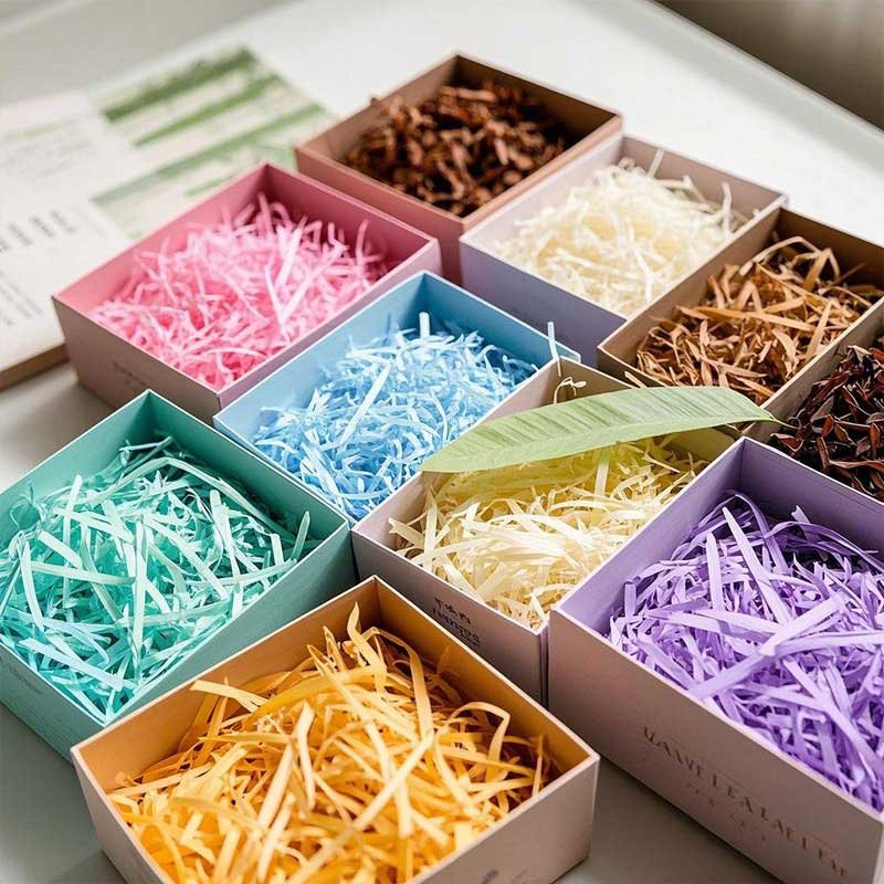 Premium Kraft Paper Shredded Filler: This crepe shredded filler, made from secure kraft paper, enhances your packaging and display; adding a touch of elegance to your gifts, baskets, and hampers.