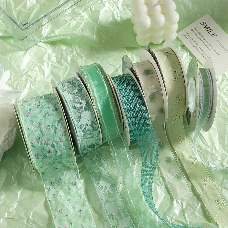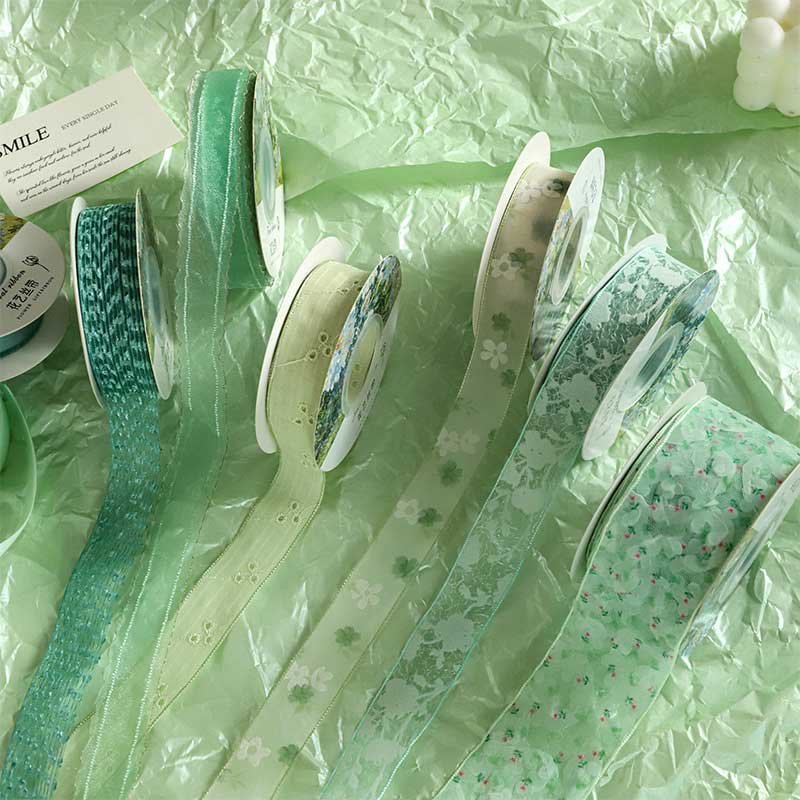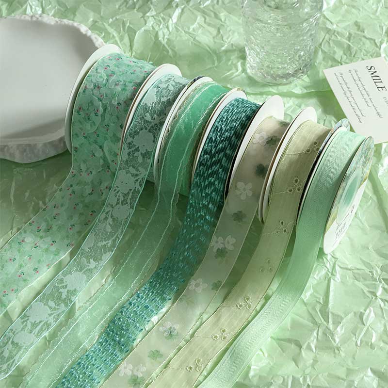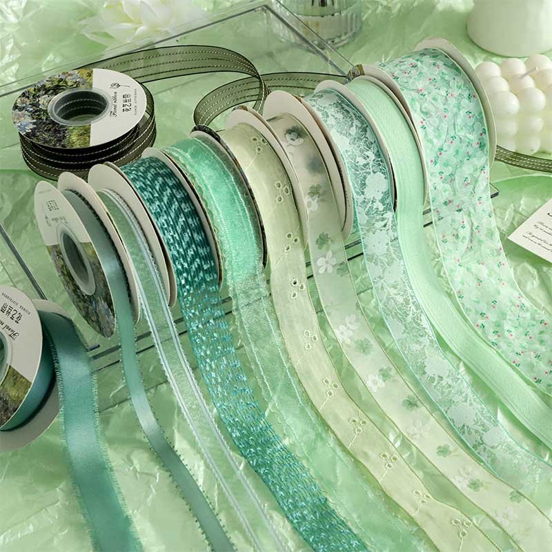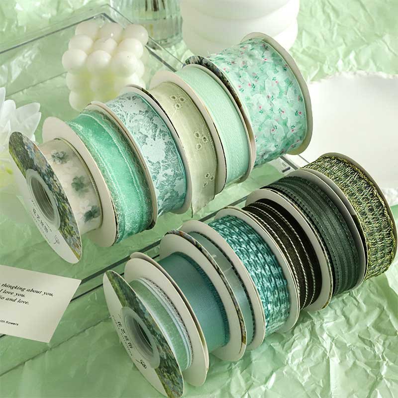 High-end green ribbons for bouquets, cakes, baking, gift boxes, and florist packaging.